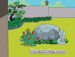 7. Высадите вокруг искусственного камня, цветы, установите различные виды садовых фигур, тем самым вы придадите вашему участку красивый вид.