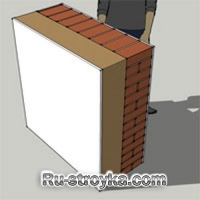6. Красный кирпич с применением древесной плиты и минеральной ваты, между шпилек.