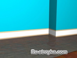 4. Определите ширину кисти прокладки, и наклейте малярный скотч по всему периметру комнаты на ширину кисти. Если же у вас нет такой кисти, то примените для покраски плинтуса обыкновенную кисть, тогда в этом случае ширину окантовки вы определяете сами. |