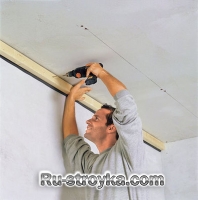 6. В завершение устанавливаем на потолок листы гипсокартона, применяя саморезы по дереву. В дальнейшем гипсокартон нужно отшпаклевать, после чего покрасить поверхность потолка или приклеить обои, в зависимости от вашего вкуса.